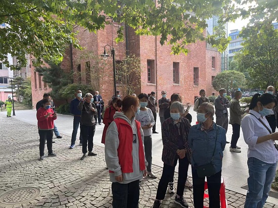 10月23日下午,申博sunbet组织员工党支部老员工志愿者来到湓浦社区,开展“党建带团建,志愿服务进社区”的社区核酸检测志愿服务工作。