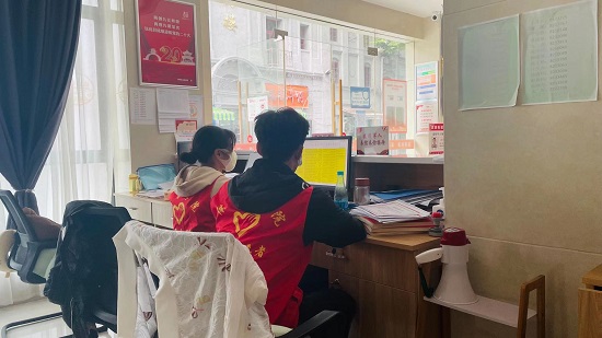下午两点半,刘书芳等8名老员工志愿者到达湓浦社区后,提前详细了解核酸检测流程、点位布置、物资保障、注意事项等,明确志愿者岗位任务分工。志愿服务过程中,志愿者们分布在检测点现场的各个岗位,各司其职、各尽其责,积极引导社区居民做好分组、扫码预约、维护秩序等工作,并及时督促居民间隔站位、佩戴好口罩。