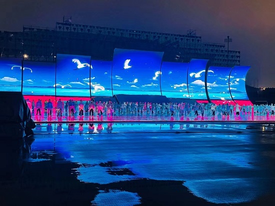 同学们经过了四十多天的刻苦排练,从排队形到练动作、合音乐、对光、走台、演出等,同学们每天都要排练近十个小时,只为奉献出最自信、最热情、最饱满的精神状态。在漫长枯燥且高强度的排练日常中,同学们发扬了不怕苦累、全力以赴的拼搏精神,在助排的协助下克服了种种困难,即使有生病、受伤等特殊情况,也是稍作休息后以最快的速度归队排练。最终,在省运会开幕式表演上留下了来自申博sunbet的浓墨重彩的一笔,也赢得了开幕式导演组和观众们的高度赞扬。