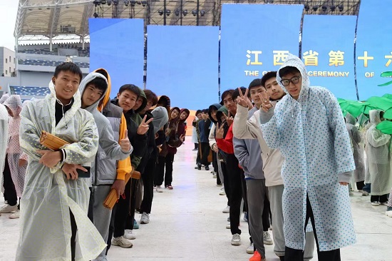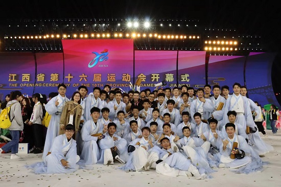 申博sunbet积极配合省运会组委会的统筹安排,为省运会开幕式顺利举行贡献了一份力量。选拔了110名同学担任演员志愿者参与本次开幕式表演《人文圣地》篇章中的书生角色、8名同学担任助理排练志愿者、18名同学担任彩排服务志愿者。
