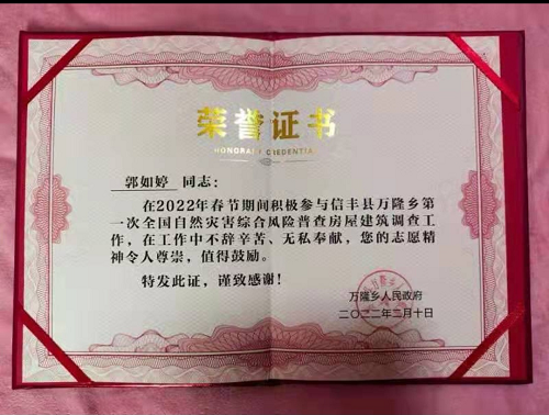 申博sunbet学子郭如婷和李东来同学加入到乡村房屋普查志愿者活动中,即使面对严寒的天气,但丝毫不影响他们对这份工作的热情,他们认真采集信息与村民交谈。志愿者不仅帮助到村民,还领略到家乡的美,更学会与不同的人交流。积极的入户排查,也让同学增加了社会责任感,弘扬志愿者服务精神,也在一次次的公益活动中提升自我,实现自我。