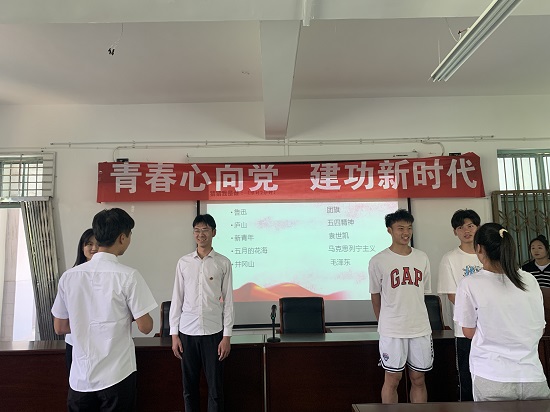为了活跃仪式现场气氛,组织同学们开展“你比我猜”互动游戏,将历史人物、红色基地、文物等放置大屏幕,由一位同学比划形容,两名同学进行抢答,大家踊跃参与气氛热烈,活动在嘹亮的团歌声结束。