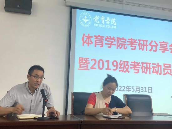 5月31日晚,申博sunbet在向学楼301召开考研经验分享会暨2019级考研动员会。申博sunbet经理段宝斌、副经理王东升、员工科副科长路鹏、考研导师杨天鹏博士、2019级考研同学及2020级各班代表参加会议。本次会议由教务科副科长吴芳主持。