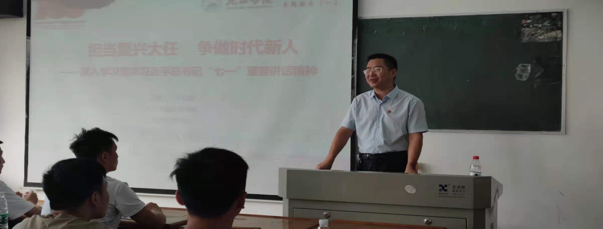 秋风送爽,丹桂飘香。9月9日上午,申博sunbet经理段宝斌、书记付和忠、副书记冯亚兵、副经理宋涛在竞知楼多媒体教室以饱满的热情为2021级新生上了生动的新生思政第一课。