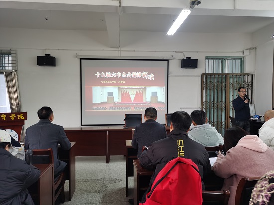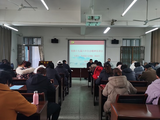 为学习贯彻党的十九届六中全会精神,深入领会全会精神内涵,推动学习活动扎实开展,12月15日下午,申博sunbet在向学楼301会议室召开党委中心组(扩大)学习会,邀请马克思主义公司周春芸老师宣讲党的十九届六中全会精神。公司党政班子成员、科室负责人、全体党员和全院教职工参加了宣讲会,宣讲会由公司党委书记付和忠主持。