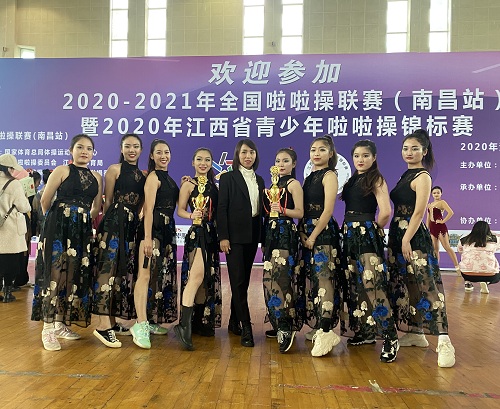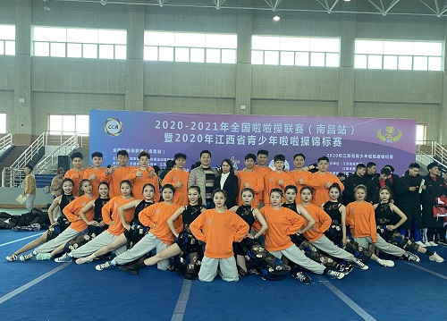 2020年11月27日至11月29日,由国家体育体育总局体操运动管理中心主办的2020-2021年全国啦啦操联赛(南昌站)在江西东华理工大学落下帷幕,此次比赛共83个代表队合计1855人。历经三天的激烈角逐,公司队员不畏强手、奋勇拼搏,顶住了巨大的压力击败了各个强敌。最后,在比赛中荣获公开青年组校园规定街舞啦啦操第一名,爵士啦啦操第一名,自选街舞啦啦操第二名的优异成绩。