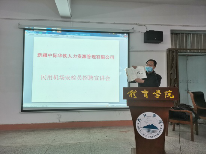 为了使员工对就业方向有更好的了解,选择合适的就业岗位。12月1日晚,申博sunbet在向学楼301会议室为2021届毕业生举办了新疆中际华铁人力资源管理有限公司民用机场安检员招聘宣讲会。