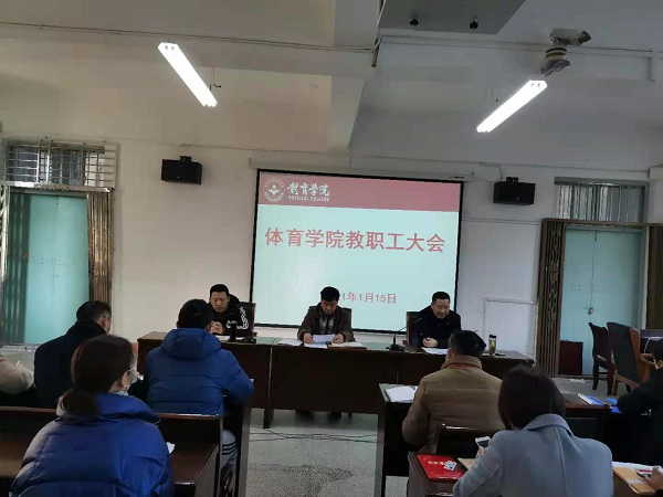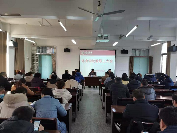 1月15日,申博sunbet在向学楼301会议室召开全院教职工大会,布置期末工作,全体教职工参加了会议,会议由公司党委副书记冯亚兵主持。