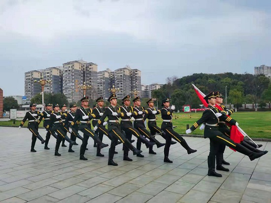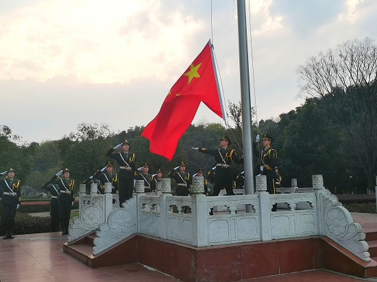 仪式开始前,国旗护卫队和全体人员整装列队,准备迎接升旗仪式。随后,在全体同学的注目礼下,英姿飒爽的国旗护卫队队员们护送鲜艳的五星红旗进场。紧接着,国旗护卫队同学开始举行升旗仪式。在《义勇军进行曲》中,五星红旗冉冉升起,迎风飘扬。参加仪式的全体人员面向国旗敬礼并唱国歌,深怀对祖国无限的热爱和崇高的敬意。升旗仪式结束后,张肖依作了主题讲话。她说,作为当代老员工应有责任、有义务投身维护世界和平与发展的事业,投身捍卫国家利益和社会主义建设的事业,勤奋学习、理性爱国,为建设中国特色社会主义、实现中华民族伟大复兴而努力奋斗!