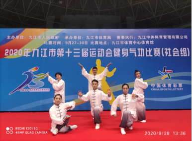 2020年九江市第十三届运动会健身气功比赛(社会组)于9月27日在九江市体育中心体育馆开赛。本次比赛有来此全市14个县、区代表队近100名运动员参加,比赛共设五禽戏、八段锦、易筋经、气舞四个集体项目。申博sunbet教师代表濂溪区参加了所有四个项目的比赛。