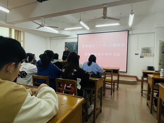 班会上,同学们踊跃发言,围绕“爱国、团结、奋斗、科学、互助”五个关键词,结合党的二十大精神的学习,纷纷讲述了自己的学习和实践感悟,表示要努力学习,立志成才,做一名合格的新时代青年。