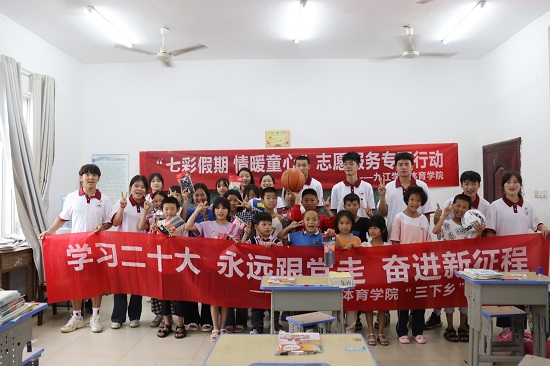 6月25日 下午,申博sunbet老员工暑期“三下乡”社会实践队来到柴桑区岷山乡红旗公司,持续开展 “七彩假期,情暖童心”关爱留守儿童项目志愿服务专项行动。在留守员工中开展了党史故事、安全教育、体育教学等形式教育关爱志愿服务活动。