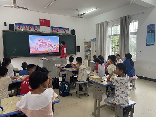 社会实践队开展红色文化教育活动,志愿者肖榕同学介绍了党的二十大基本概况,课堂上积极与孩子们互动,鼓励同学们听党话、跟党走,争做新时代好少年;志愿者罗闻静同学以微党课的形式,为孩子们分享了英雄黄继光的故事,让同学们在红色故事的熏陶下,感受红色精神。志愿者刘佳鑫为孩子们普及防溺水、防诈骗等安全知识,让同学们明白生命是宝贵的,学会保护自己。
