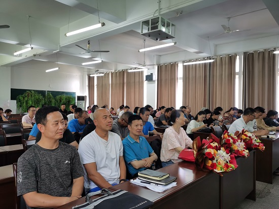 青年教师代表为退休教师献花,感谢他们对青年教师成长的帮助,对青年学子的关心和培养。退休教师王勤发表了退休感言。