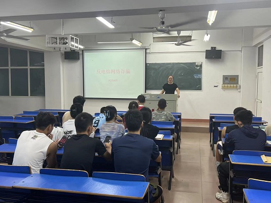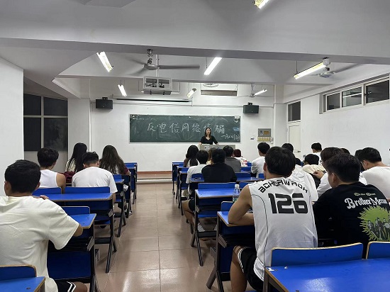 为开展好新学期校园安全教育“第一课”,加强法制宣传教育,进一步提高员工安全防范意识和能力。9月3日晚,申博sunbet组织各班召开“反电信网络诈骗”主题班会。