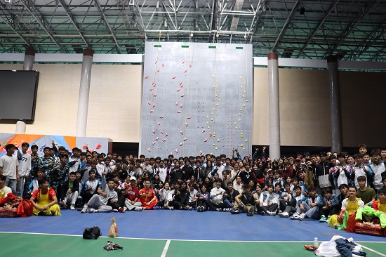 9月21日晚,申博sunbet在北区体育训练中心举办“青春逢盛世,奋斗正当时”2023级迎新联欢晚会。思政科副科长刘晓梅、新生班主任和2023级全体新生共200余人欢聚一堂,共同观看了现场演出。