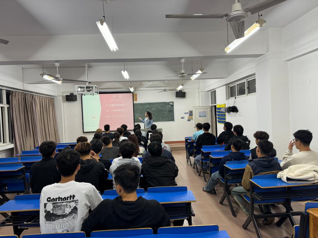 为引领新生扣好入党“第一粒扣子”,发挥党建引领作用,引导新生积极向党组织靠拢,激发爱党、爱国、爱校的热情。10月11日晚上7点,申博sunbet在2023级新生班级中开展入党启蒙教育宣讲活动。