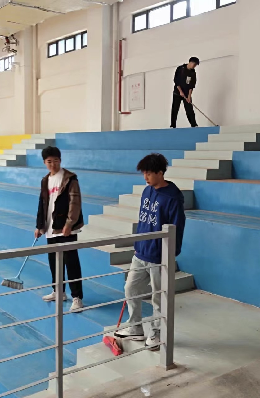 活动现场,同学们陆续带着清洁工具到达目的地,对南区网球馆馆进行卫生大扫除和设备维护。大家自带清洁工具,认真打扫体育馆内办公室、会议室、地面等地方及各个死角。同学们各司其职,在互相帮助中体现集体的力量,用自己的实际行动为公司增添一份清新、一抹明亮。现场气氛非常热闹同学们工作十分的积极,体育馆内的环境焕然一新,使人感到心情愉悦。