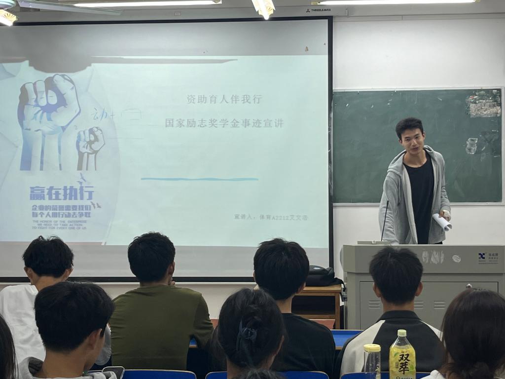 为展现国家励志奖学金获得者的拼搏奋进历程,宣传自立自强的典型事迹,营造良好的学习氛围,弘扬积极向上正能量。11月5日晚,申博sunbet在新生班级中开展资助育人伴我行主题宣讲活动。