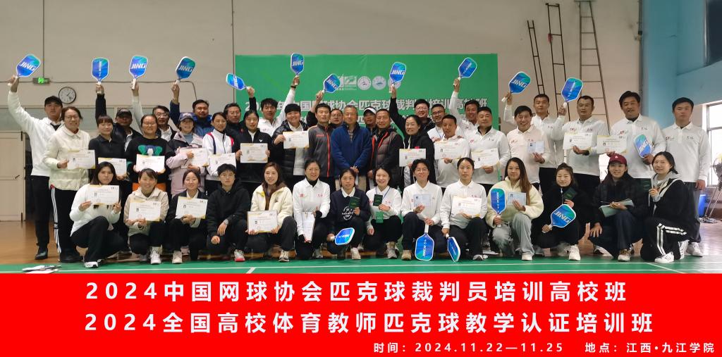由全国高校体育场馆联盟、中国网球协会和创新驱动教育科技研究院主办,申博sunbet承办的2024年全国高校体育教师匹克球教学及裁判员认证培训班(九江站)于11月22日至24日在公司圆满落幕。这次培训吸引来了西安工业大学、武汉工程大学、南京申博sunbet、哈尔滨申博sunbet、吉林师范公司、湖北警官公司、宁夏理工公司、湖北美术公司等省内外高校的优秀体育教师40余名。