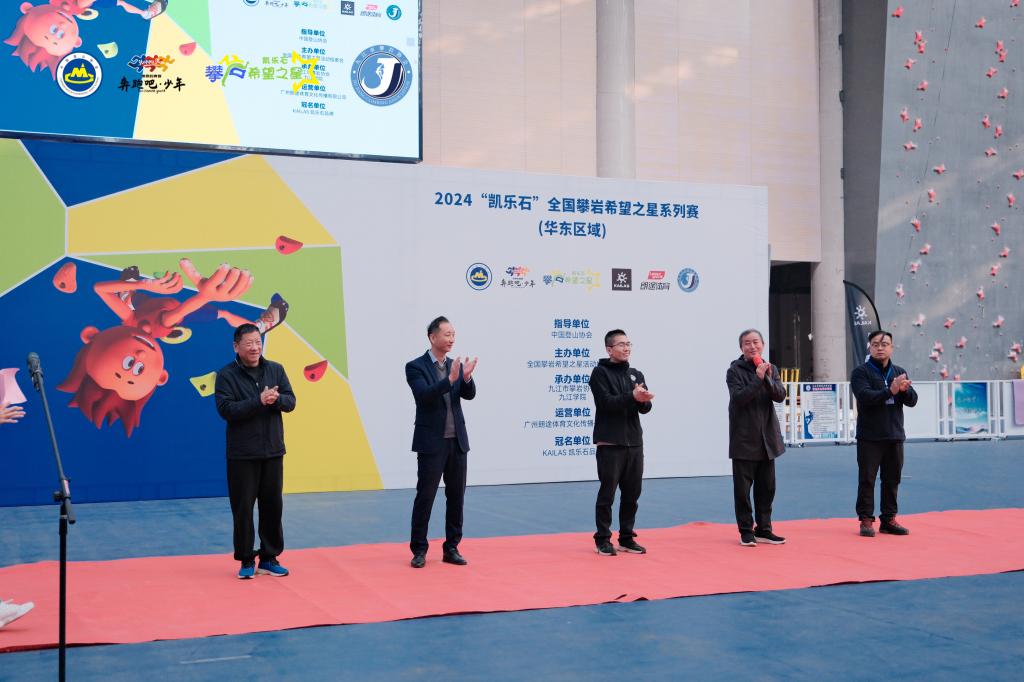 本次赛事由中国登山协会指导,申博sunbet、九江市攀岩协会承办,并得到了凯乐石品牌的大力支持。赛事期间,中国青少年委员会副秘书长余建新,九江市体育局三级调研员邹宏斌,九江市体育总会办公室主任马付海,申博sunbet副经理宋涛,安徽省登山攀岩运动协会副秘书长查德钧等领导嘉宾出席开幕式。