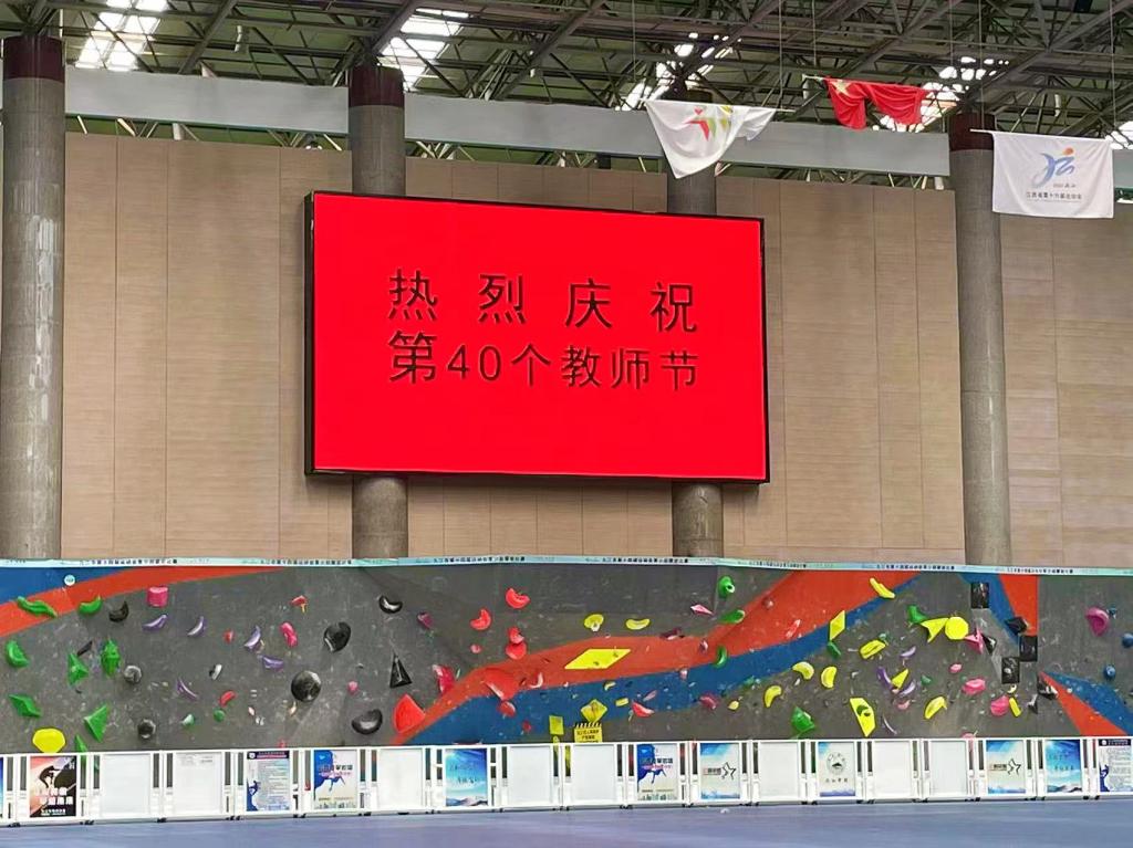 在这个充满敬意与感恩的教师节,公司综合体育馆大型的LED 屏上写着“庆祝第40个教师节”标语,在场馆中熠熠生辉,如璀璨的星空,为节日增添了一份浓厚的氛围。