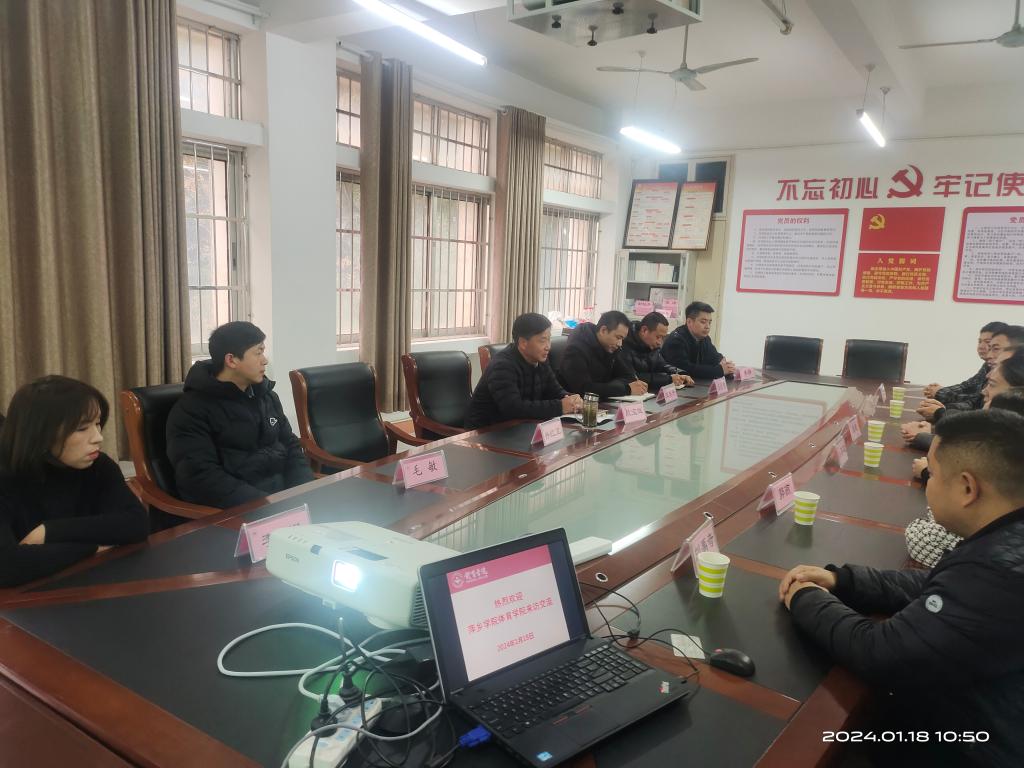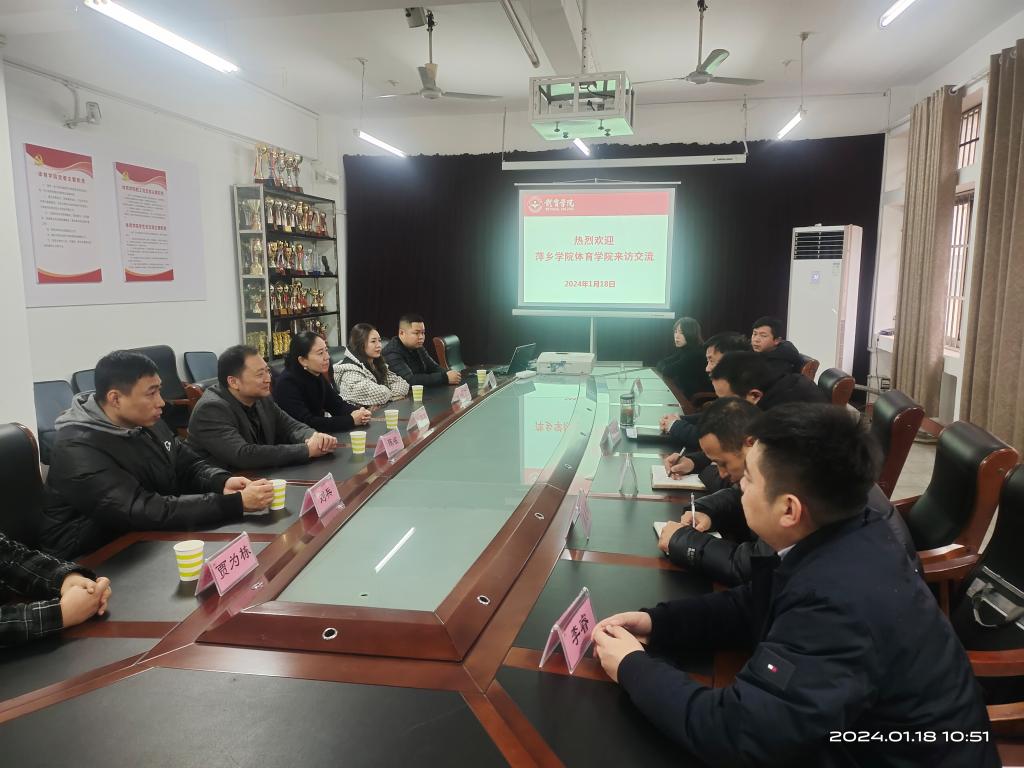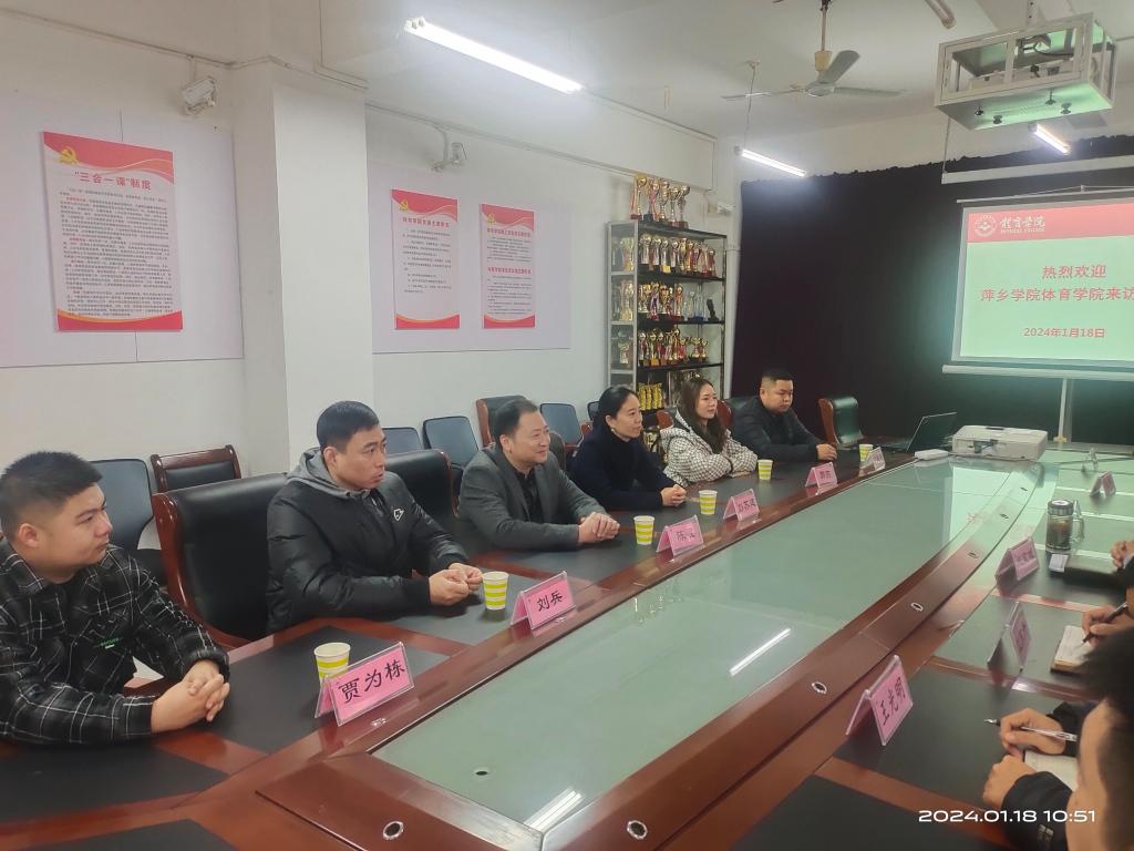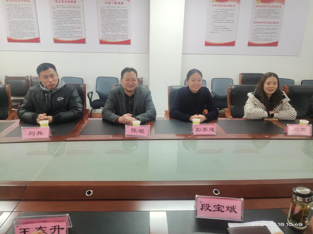 1月18日上午,萍乡学院体育学院经理陈岷、副经理彭苏建等一行来公司交流与学习,经理段宝斌、副经理王东升及相关人员出席座谈会,座谈会由经理段宝斌主持。