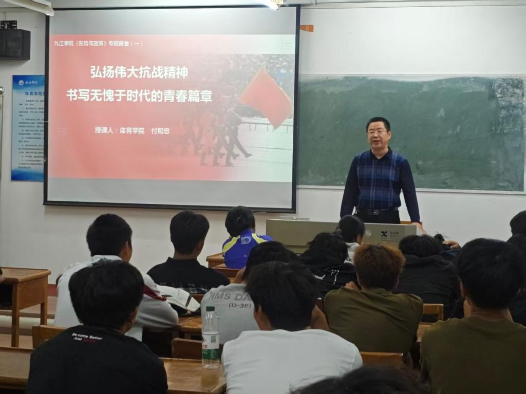 付和忠书记从从抗战历史脉络入手,阐述了中国共产党在抗日战争中发挥的中流砥柱作用。他讲到,抗战岁月里,英雄们用“以身许国”的壮志,在中华大地上刻下不朽丰碑。强调当代青年要承接这壮志火炬,将壮志转化为攻坚克难的实际行动。