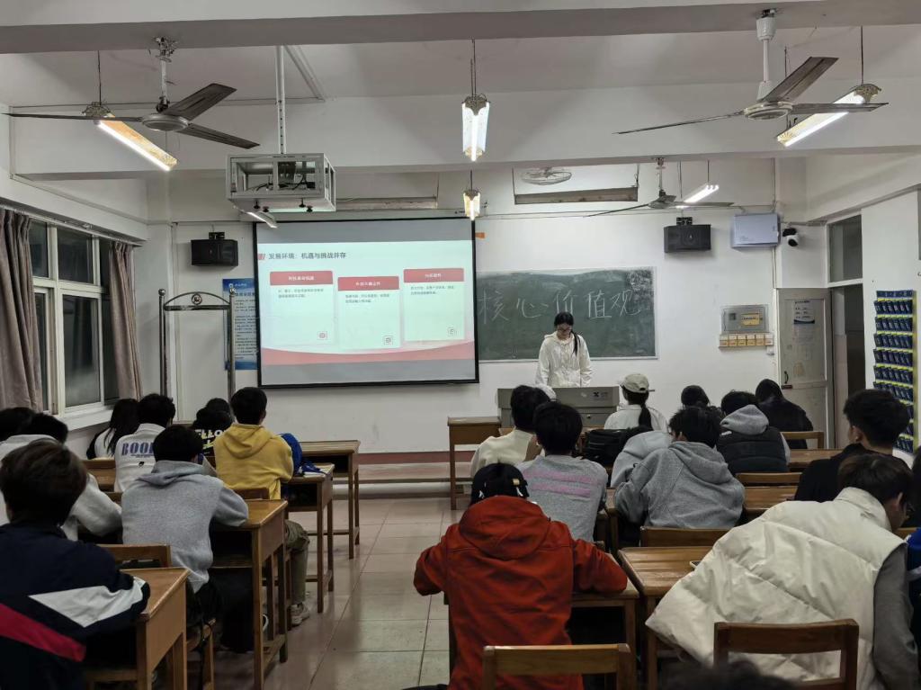 活动中,各班首先传达学习习近平总书记在党的二十届四中全会上的重要讲话和全会精神,强调认真学习党的二十届四中全会精神对于青年一代深刻理解国家治理体系和治理能力现代化宏伟蓝图、坚定理想信念、强化责任担当的重要意义。