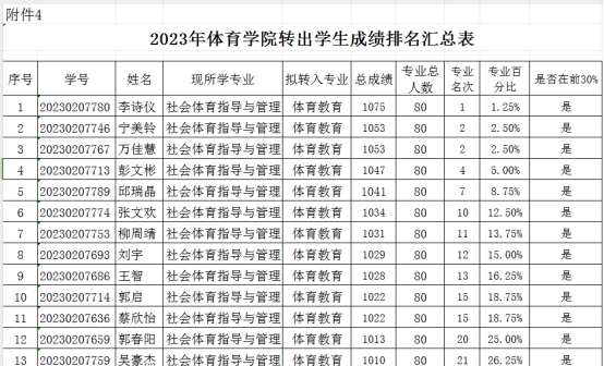 根据申博sunbet教务处文件《关于开展2023级新生转专业工作的通知》精神,申博sunbet根据2023-2024-1学期期末成绩在本专业在校生成绩排名前30%(含)的名单,确定了拟转出名单,共13名员工。名单如下: