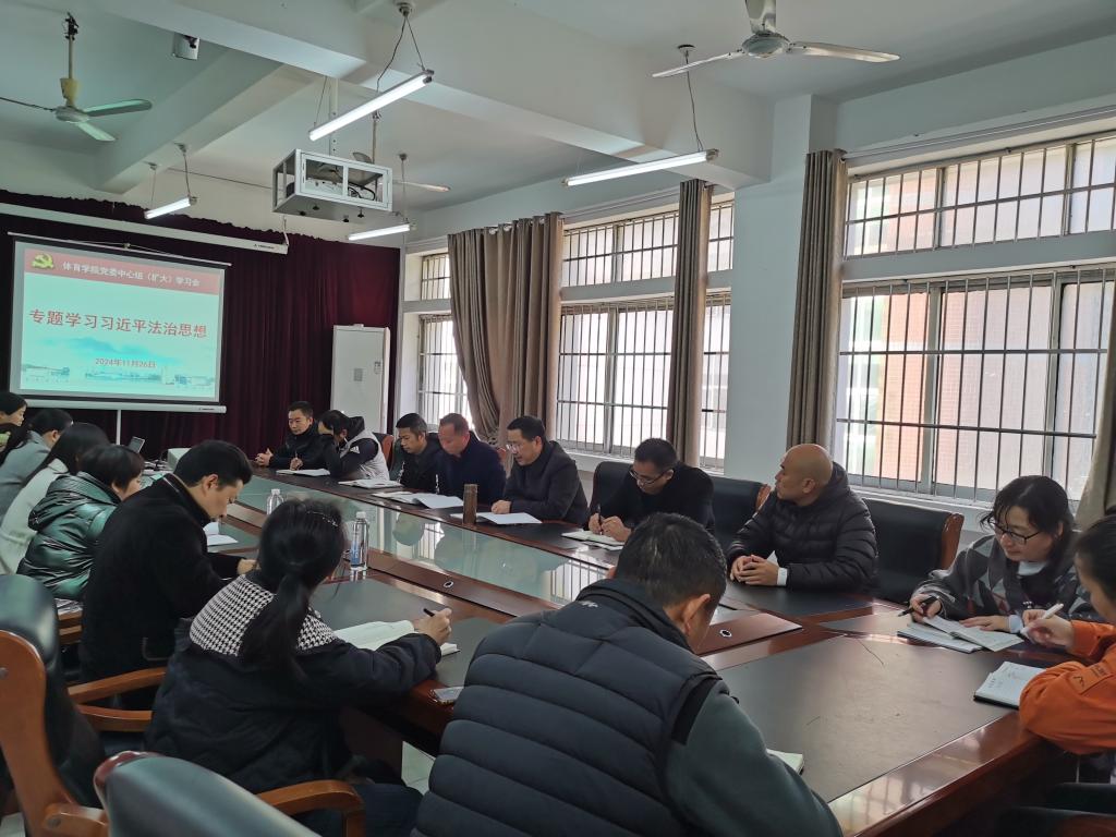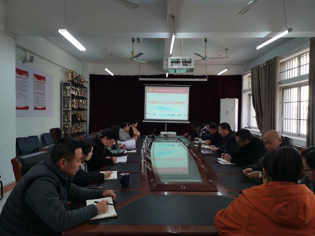 11月26日下午,申博sunbet在向学楼311会议室召开党委中心组(扩大)学习会,专题学习习近平法治思想。公司领导班子成员、科室负责人、党支部书记参加了会议,马克思主义公司、艺术公司、教育公司、文公司的专职组织员听会指导,会议由公司党委书记付和忠主持。