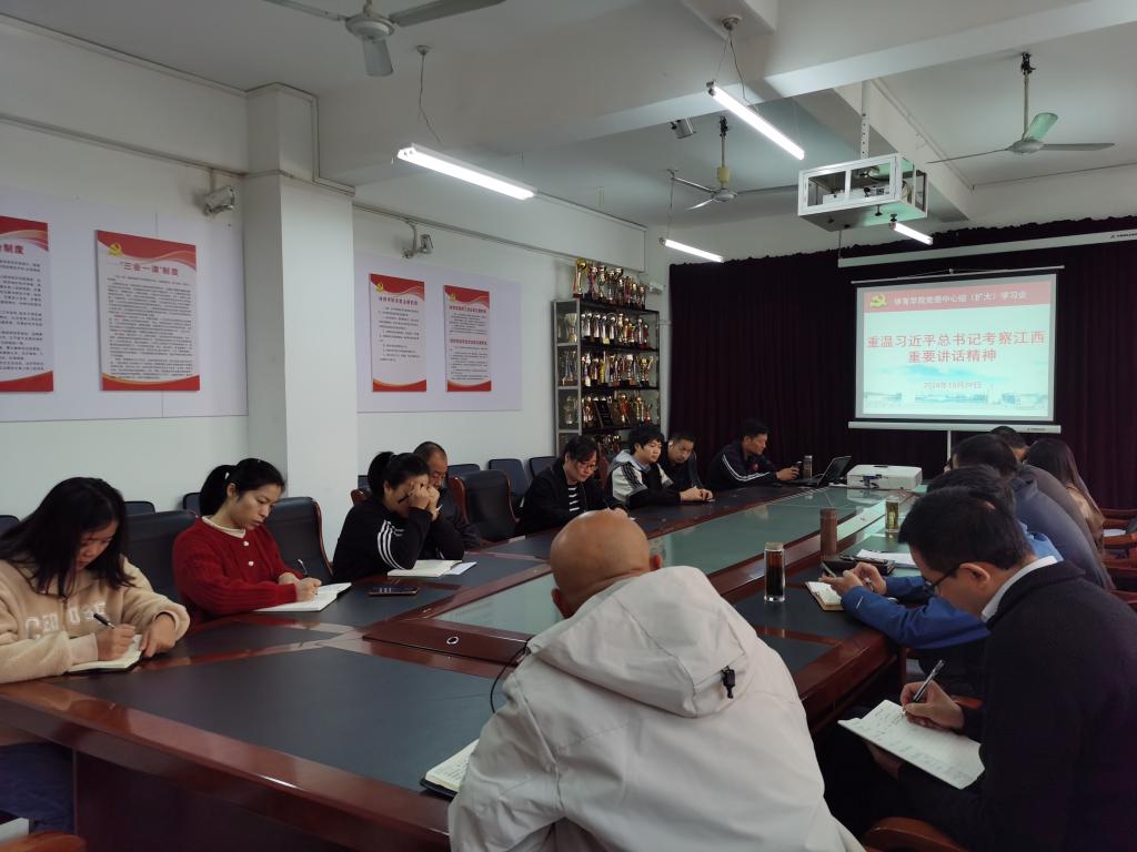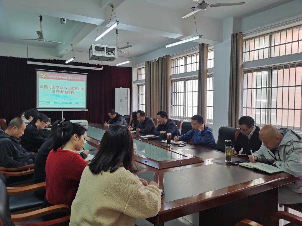 10月29日上午,申博sunbet召开党委中心组(扩大)学习会,重温习近平总书记考察江西重要讲话精神,深入学习领会习近平总书记关于意识形态工作的重要论述。公司领导、科室负责人、教研室主任、党支部书记参加了会议,会议由公司党委书记付和忠主持。
