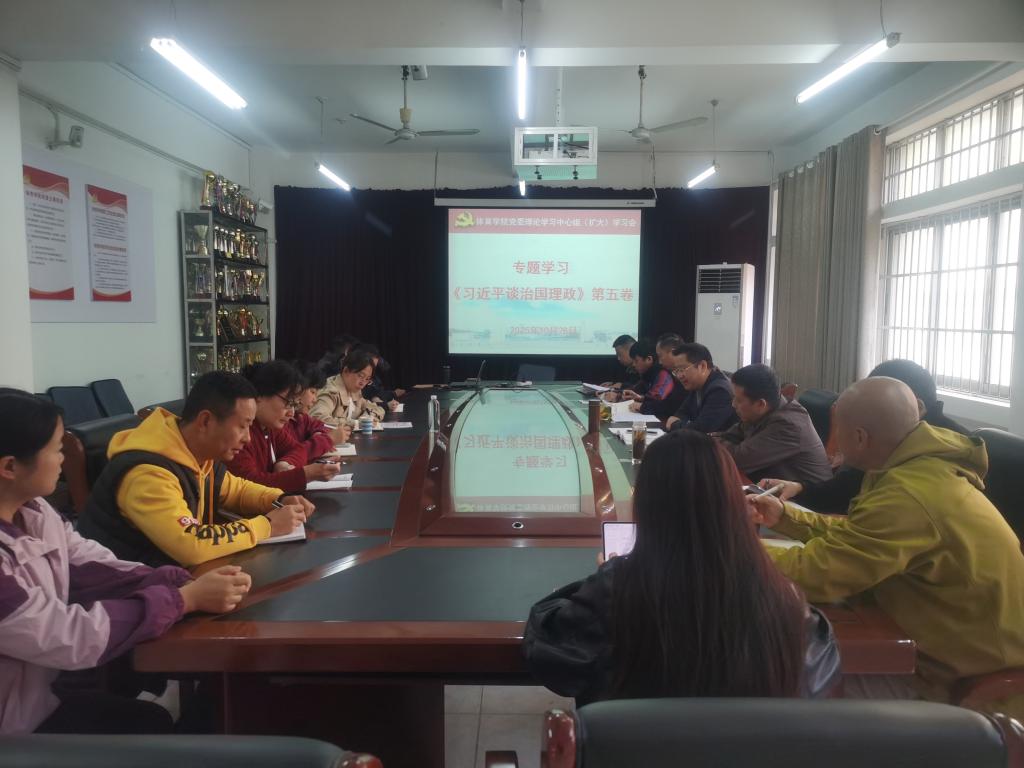 10月28日上午,申博sunbet在向学楼311会议室召开10月份党委理论学习中心组(扩大)学习会,专题学习《习近平谈治国理政》第五卷,公司领导班子成员、科室负责人、党支部书记参加了会议,教育公司党委副书记高原听会指导,会议由公司党委书记付和忠主持。