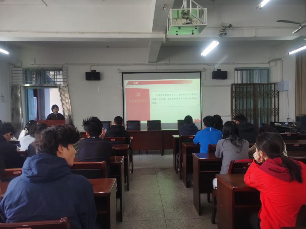 10月23日下午,培训班邀请外国语公司组织员程洁老师讲授题为《党的基本知识》的专题辅导党课。她详细讲述了党的性质、指导思想、根本宗旨、纲领、党员的义务和权利等党的基本知识。
