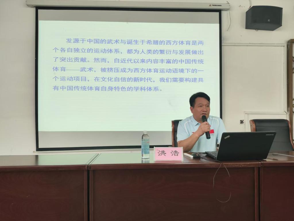 为了加快体育专业硕士点建设工作,夯实体育团队建设,促进公司内涵式发展,9月13日下午,申博sunbet邀请河南大学武术公司经理洪浩教授来院为师生开展学术专题讲座,讲座主题是《中国传统体育专业与武术团队建设的思考》。