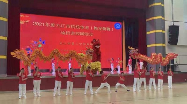 2021年5月25-26日,申博sunbet应邀作为协办单位参加由九江市教育局主办的“传统体育(舞龙舞狮)项目进校园”活动。