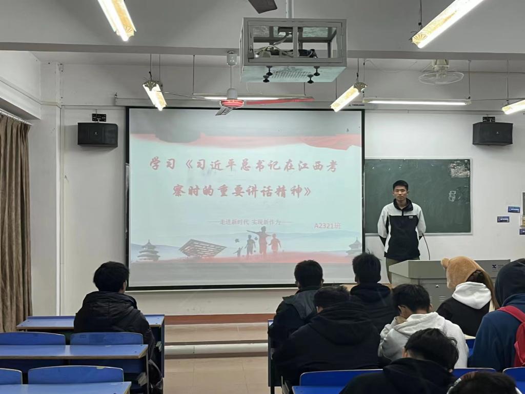 A2321班程永康在演讲中,从努力建设人与自然和谐共生的生命共同体、立足实际构建现代化产业体系、全面推进乡村振兴、传承发展中华优秀传统文化四个方面,讲述了自己的学习体会,其他同学纷纷畅谈了对未来的规划和承诺,表达了新时代青年肩负的重任。