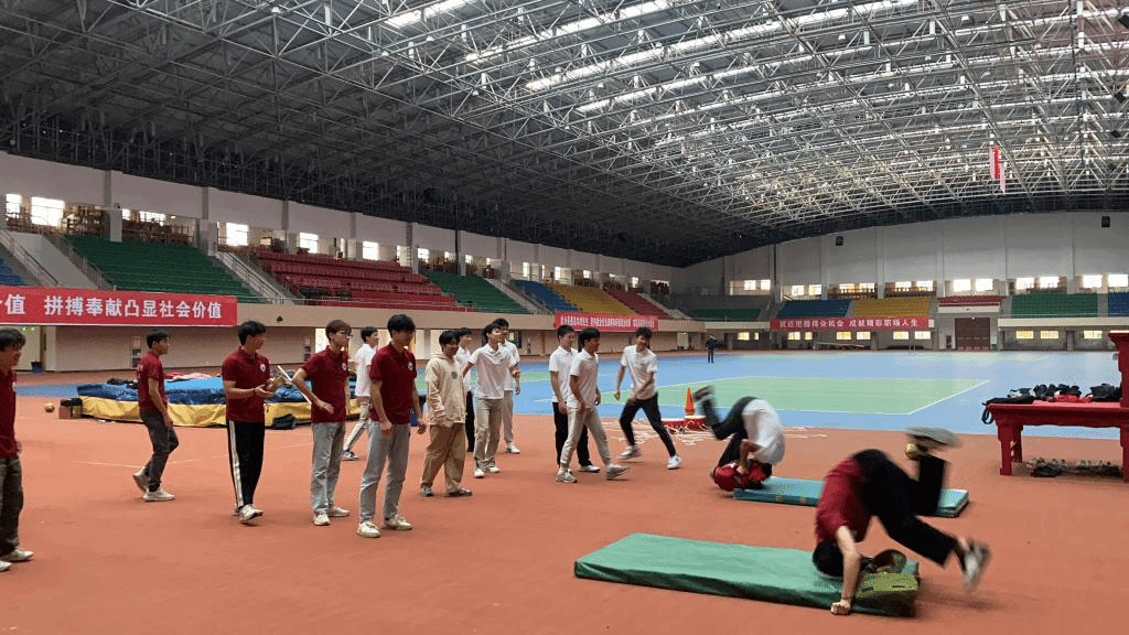 团队竞速,以红色战士为主题,融合体育元素,共绘宏图。团队协助,加强同学之间的竞争意识和团队配合。利用体操专业知识进行突破封锁,加强联系,树立信心,增强凝聚力,形成奋发向上的氛围。