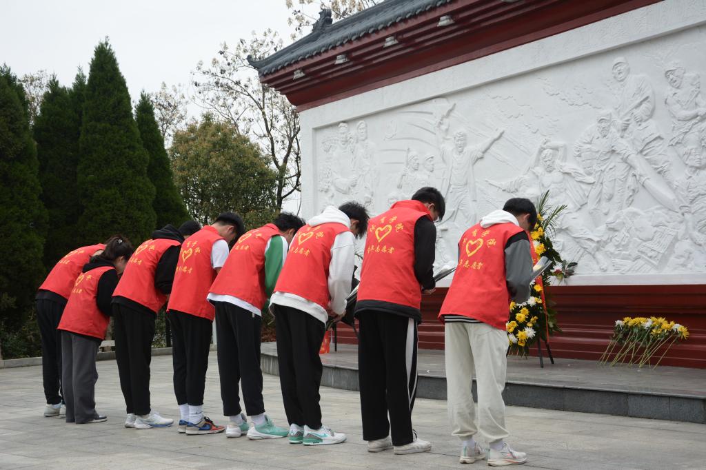 在革命烈士纪念碑前,同学们列队整齐、神情肃穆,寄托着对烈士的崇敬与缅怀之情,悼念默哀并敬献花篮。随后在现场工作人员的讲解下,深入学习革命先烈前赴后继、无私奉献的英勇事迹,学习老一辈革命志士在逆境中艰苦奋斗、为革命坚持到底、战斗不息的精神。