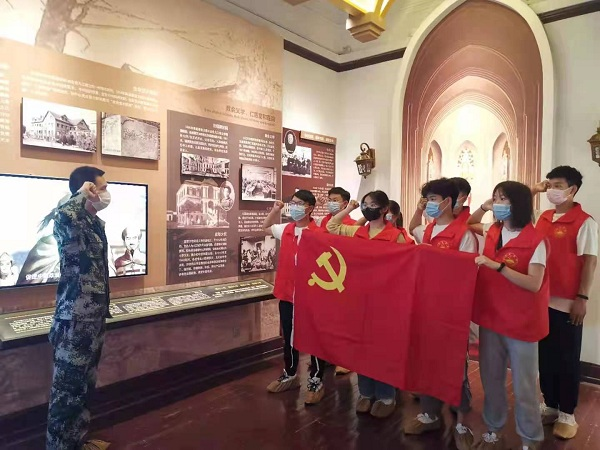 大家在湓浦社区主任的带领下来到九江租界内。英租界内复古的院子,一砖一瓦、一草一木都仿佛在诉说着九江的历史。博物馆内陈列着九江的各种历史故事,步入其中仿佛置身于十九世纪的九江,将大家带回到了那列强侵略、战火纷飞的岁月,让大家深知如今美好生活的来之不易。随后,大家面对党旗,重温入党誓词,对党作出的庄重承诺。