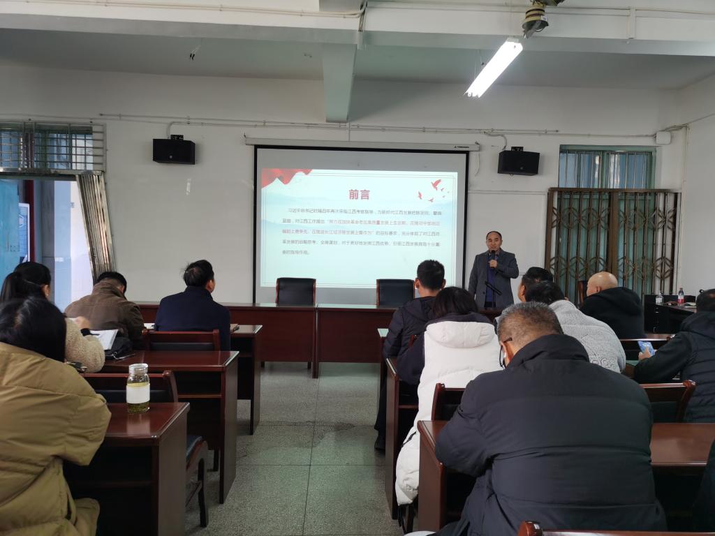 12月6日下午,申博sunbet在向学楼301会议室召开党委中心组(扩大)学习会,邀请马克思主义公司段善君老师宣讲习近平总书记考察江西的重要讲话精神。公司党政班子成员、科室负责人、全体党员和全院教职工参加了宣讲会,宣讲会由公司党委书记付和忠主持。