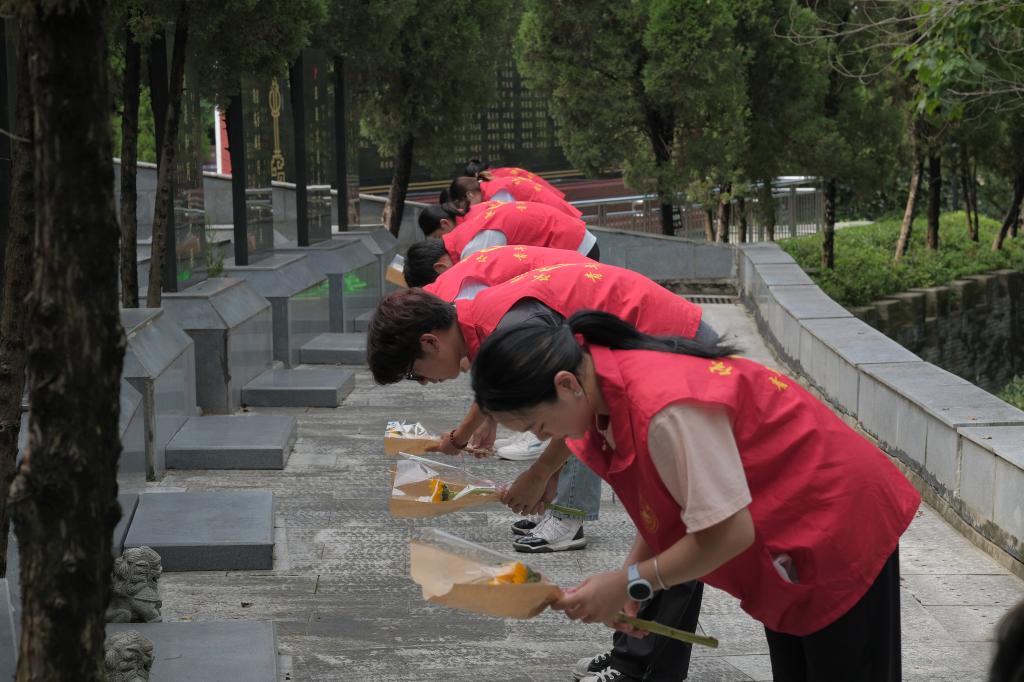 在南山公园革命烈士陵园祭扫活动中,全体人员身着整洁服装、手持鲜花,整齐列队肃立烈士纪念碑前。伴随哀乐,全体人员默哀致敬;随后,同学们集体献花,以朴素行动追思先烈。员工党员代表代可可发言表示,作为时代新人,定会传承红色基因,把抗战精神融入体育拼搏中,担当时代使命。全体人员还聆听了九江本地先烈事迹,在历史中感悟初心,凝聚各民族团结奋斗共识。
