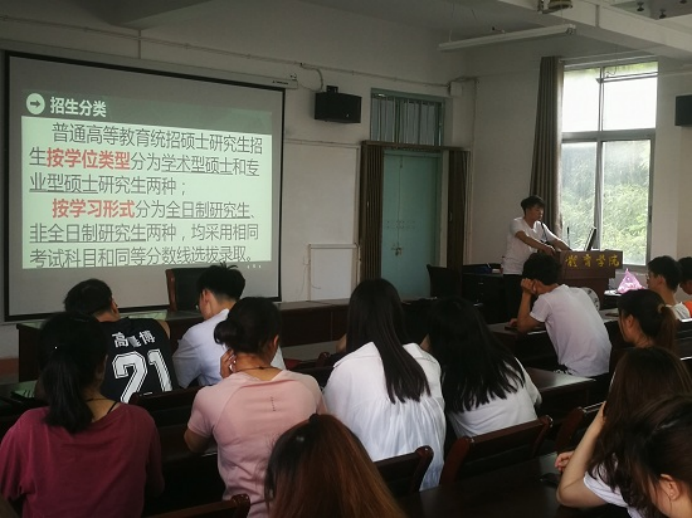 会上,同学们认真听讲,部分同学就考研的疑惑进行了提问,袁伟林师兄进行了耐心、细致地解答。最后,占玉珍副教授就讲座内容做了总结性发言,对同学们线下进行交流提供了强有力的支持并鼓舞大家用心学习,明确每位同学对未来考研要有更加清晰的计划。最后2019级全体同学们用热烈的掌声对参加此次分享考研经验的师兄表示感谢。