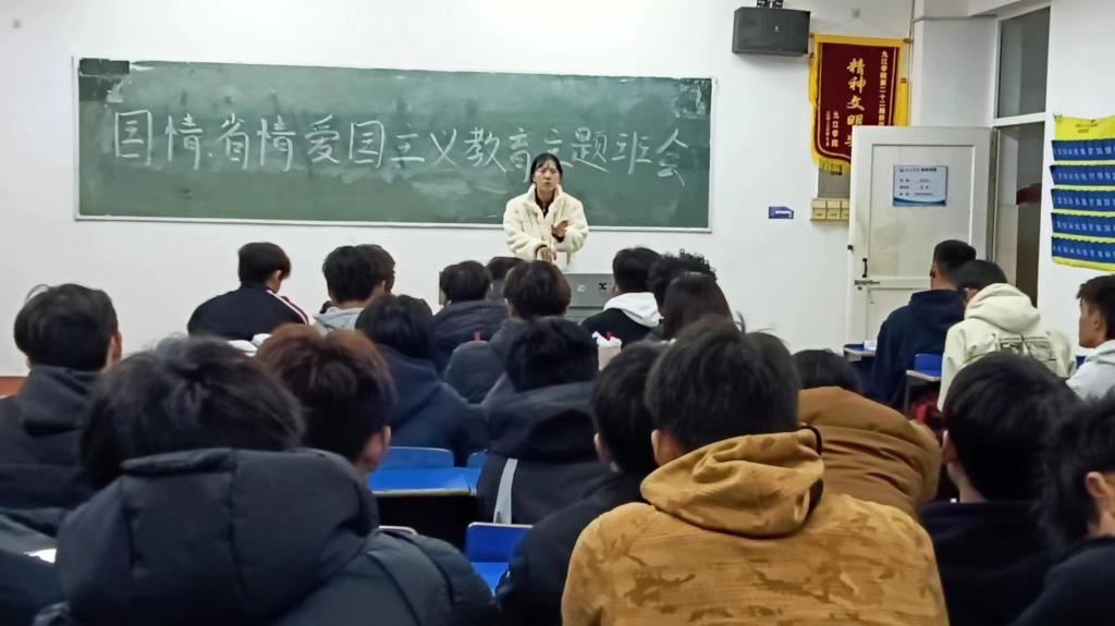 班会上,班主任向广大同学宣讲国情省情和形式政策。让同学们了解中国政治、经济、自然生态等方面基本情况,从而激发起爱国热情。让同学们更加了解江西,江西是中国革命的摇篮、人民共和国的摇篮、人民军队的摇篮、中国工人运动的摇篮,是一片浸染着无数革命先烈鲜血的红土圣地。江西红色资源丰富,我们要传承好红色基因,持续接力奋斗。