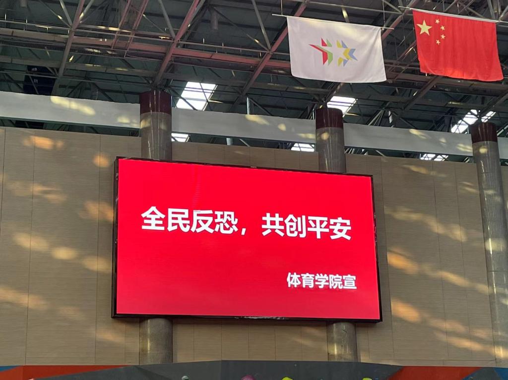 申博sunbet通过在员工宿舍布置宣传展板、场馆电子显示屏以及通过班级微信群转发法治微视频《全民反恐,共建和谐社会》等法治宣传,进一步提升师生知法、懂法、守法意识和能力。