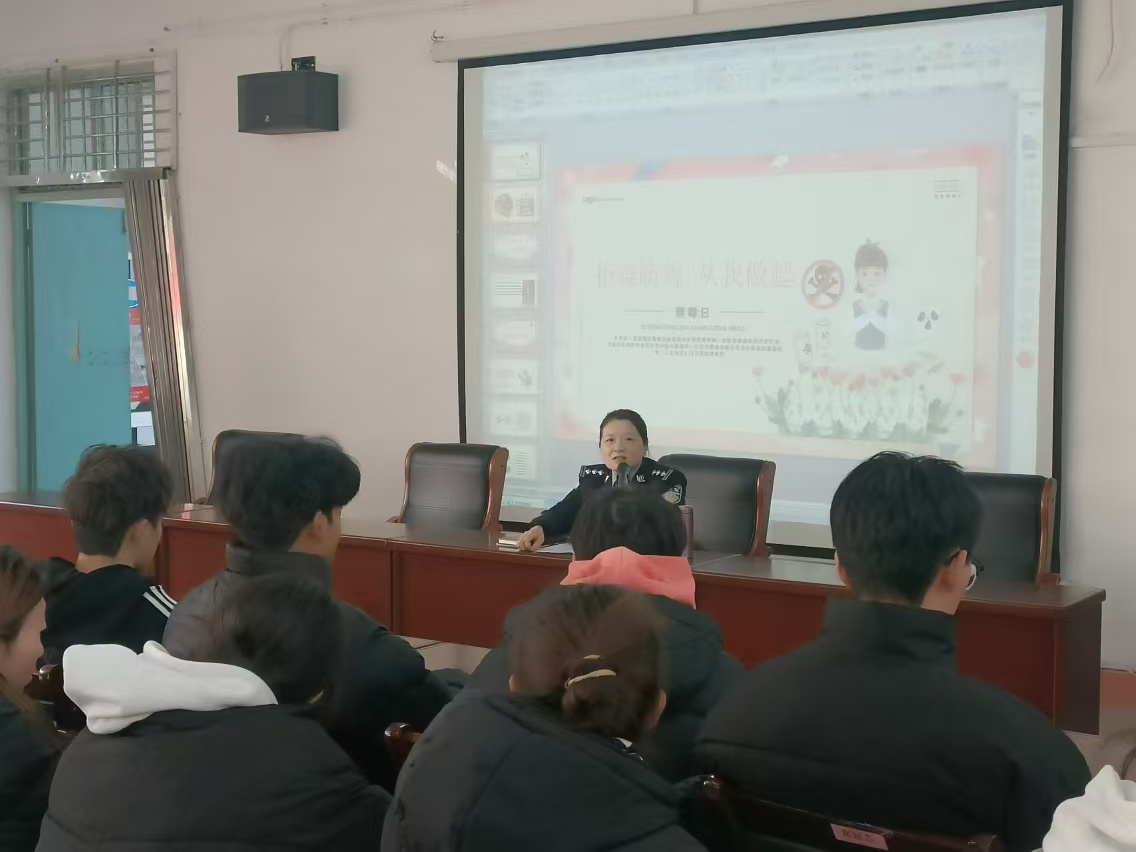 邹敏华警官通过PPT结合自己的办案实际经验,给同学们讲解传统毒品、新型毒品的种类,给个人、社会以及家庭带来的危害。通过她多年掌握吸毒人员心理矫治规律,让同学们了解毒品知识、认清毒品危害,消除了在毒品认识上的误区,并讲到作为老员工如何防范毒品,让“珍爱生命,远离毒品”观念深入人心,同时也在一定程度上提高了师生对毒品的防范能力。