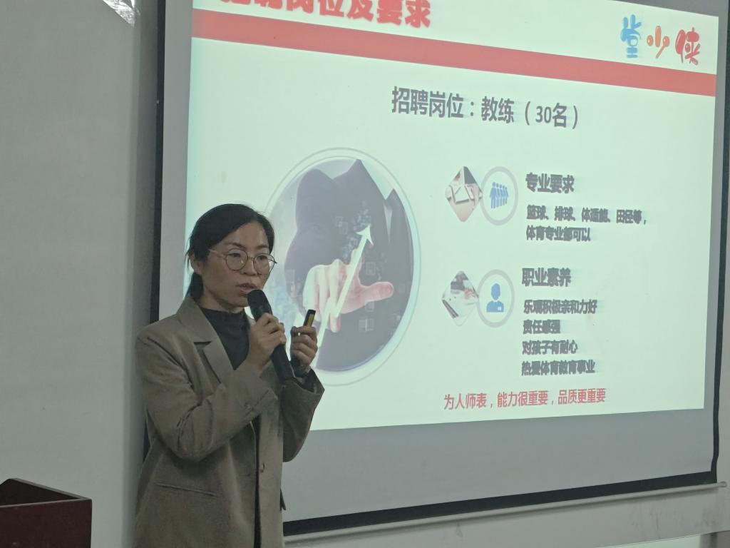 为强化就业教育引导,抢抓毕业生求职关键期,促进毕业生高质量就业。11月4日晚,申博sunbet召开就业宣讲会暨企业专职招聘会,浙江省温岭市堂少侠体育培训有限公司以及江西格莱德教育信息咨询有限公司受邀出席,2025届毕业生及2022级员工代表参加本次招聘会。