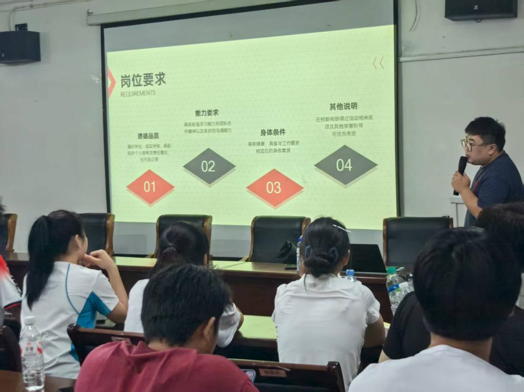 为进一步深化校企合作,切实提升公司毕业生的就业质量。9月15日晚,申博sunbet在向学楼301召开企业专场校园招聘会。本次邀请招聘企业是宁波橙星体育发展有限公司,拟招聘2026届羽毛球专项毕业生。