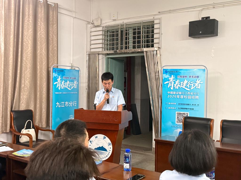 9月29日晚,申博sunbet联合中国建设银行九江市分行开展校园招聘宣讲会。中国建设银行九江市分行在本年度秋招中岗位涉及综合营销岗,主要面向乒乓球、羽毛球、网球、田径等专项方向毕业生。