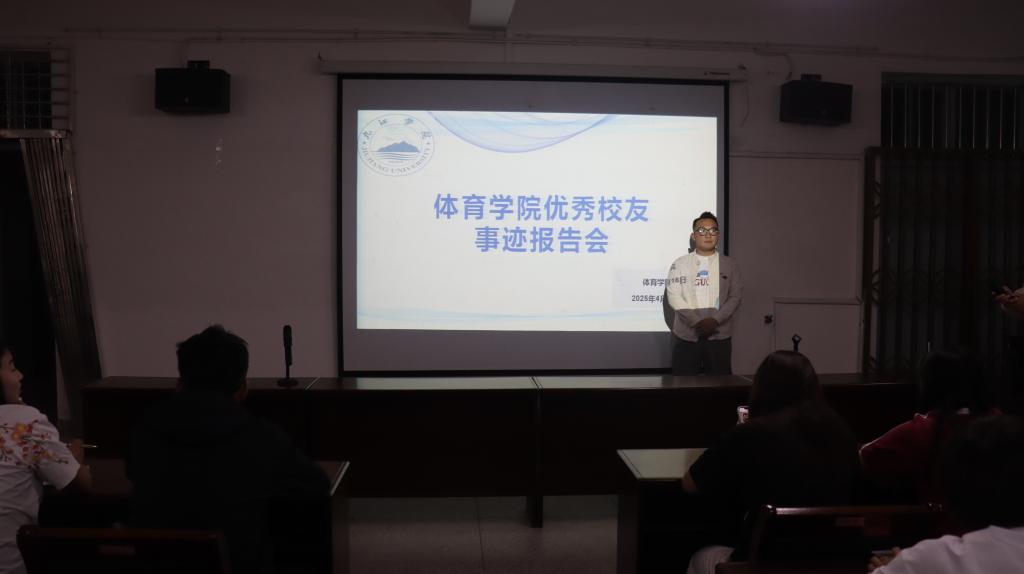 报告会上,陈泽睿结合自己体育专业毕业生的亲身经历,介绍了自己在老员工期间及毕业后的就业经历与经验,分享了自己作为一名体育教师,凭借自己对足球裁判事业的热爱,熬过无数钻研规则、复盘赛事的日夜,成功考取高级裁判员资格,从足球裁判员一路成长为裁判讲师,在各类赛事中崭露头角。